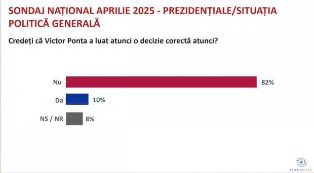 82% dintre români spun că Victor Ponta a luat o decizie greșită când a decis în 2014 să inunde România, cu motivația de a proteja Belgradul, arată concluziile unui sondaj Flashdata, realizat în perioada 10-12 aprilie.