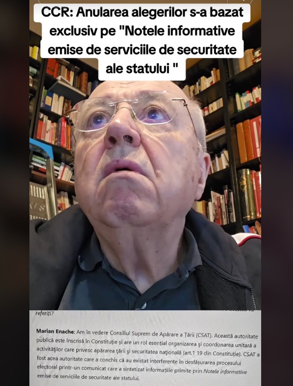 Marian Enache, președintele CCR, stinge lumina tuturor celor care cer de dimineață până seara, să se aducă adevăratele probe care au stat la baza anulării alegerilor. În interviul acordat site-ului juridice ERO, un interviu cu răspunsuri date înscris, la întrebări date înscris, deci este un document elaborat, care i s-a dat drumul acum în lume tocmai pentru a răspunde acuzațiilor americane de gest antidemocratic, șeful CCR spune că la baza deciziei CCR a celor noi jucători a stat A stat în exclusivitate comunicatul Xat. Vi-l dau mai jos, da? Bun.